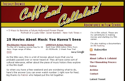Coffee and Celluloid have compiled an interesting list of 25 Movies About Music You Haven’t Seen.