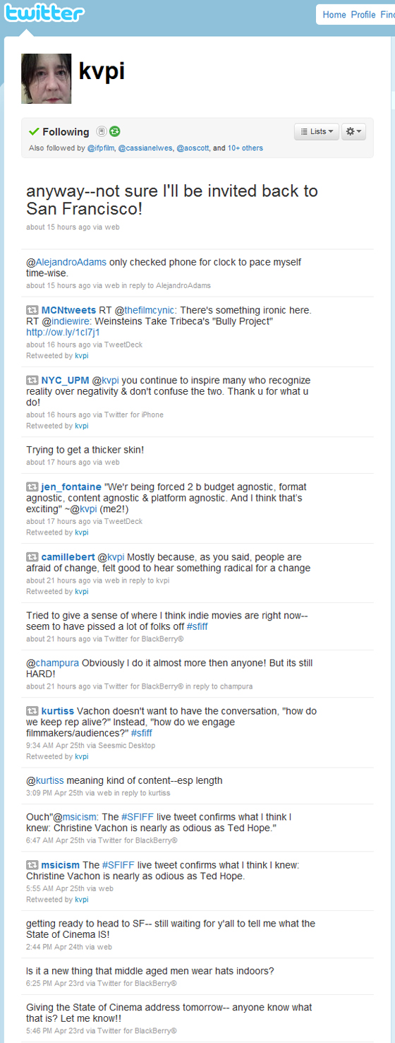 The successful US indie producer (American Splendor, In The Bedroom) has been an active blogger and Twitter user at a time of great turmoil and change for the independent sector. Part of that is down to the challenges facing filmmakers and distributors in a world where old economic models have been disrupted by new technologies and the financial crisis.Ā His previous blog has now moved over to IndieWire and is a good place to visit to find out what the future of the industry might look like, as the ideas and debates he encourages may filter through to the mainstream.