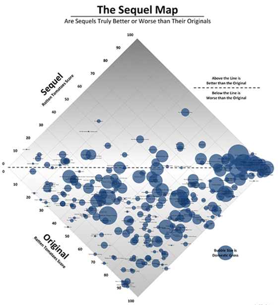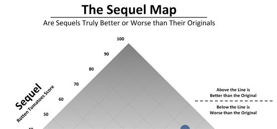 Using Rotten Tomatoes, the originalsā scores on the X-axis are put against the sequelsā scores on the Y-axis.