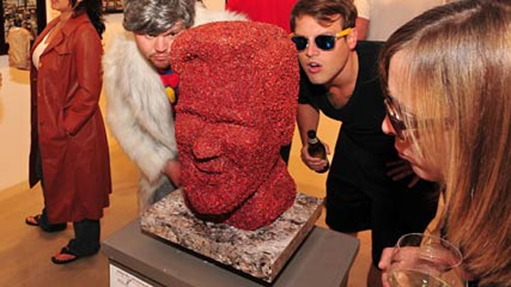 Artist Mike Lahue carved a styrofoam bust of the actor and then used bacon bits covered by glue and several coats of lacquer as soft, cooked bacon would rot too easily.