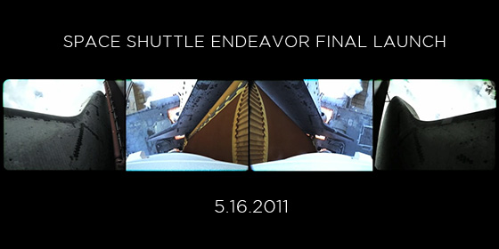 A NASA video of Space Shuttle Endeavor‘s last launch has been re-cut so we can see all four camera angles simultaneously.