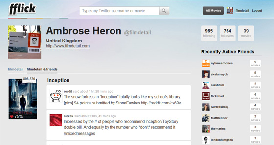 If you use the popular micro-blogging servce then Fflick lets you see what your followers are saying about certain films, whether it is Roger Ebert, Oprah Winfrey, Jon Favreau or yourself.