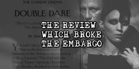 All who attended screenings of The Girl With The Dragon Tattoo agreed in writing to withhold reviews until closer to the date of the filmās worldwide release date. Regrettably, one of your colleagues, David Denby of The New Yorker, has decided to break his agreement and will run his review on Monday, December 5th. This embargo violation is completely unacceptable.