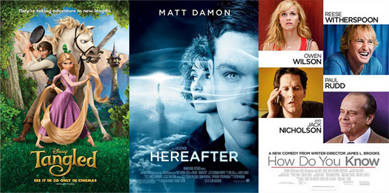 How Do You Know (Sony Pictures): A romantic comedy centering around a softball player (Reese Witherspoon), an executive (Paul Rudd) and a baseball pitcher (Owen Wilson) for the Washington Nationals.