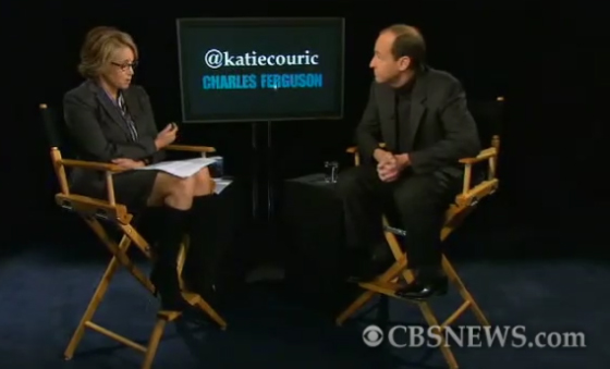 At the ceremony Charles Ferguson gave a pointed critique of Wall Street and the financial industry: