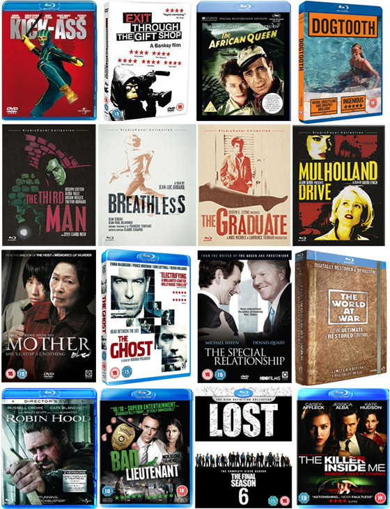 Alice in Wonderland (Disney) [Blu-ray + DVD] Armored (Sony Pictures Home Ent.) [Blu-ray / DVD] Astro Boy (E1 Entertainment UK) [Blu-ray + DVD] Bodyguards and Assassins (E1 Entertainment UK) [Blu-ray + DVD] Daybreakers (Lionsgate UK) [Blu-ray / DVD] La Boheme: Royal Opera House (Opus Arte) [DVD] One Night in Turin (Kaleidoscope Home Ent.) [Blu-ray / DVD] Romantic City: Venice [Blu-ray] Salome: Royal Opera House [Blu-ray] The Sky Crawlers (Manga Entertainment) [Blu-ray / DVD] Winter in Wartime (Kaleidoscope Home Ent.) [Blu-ray / DVD]